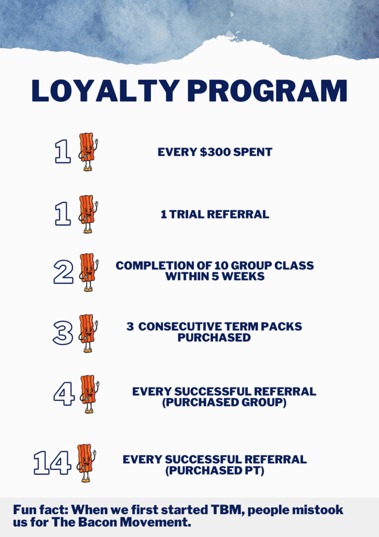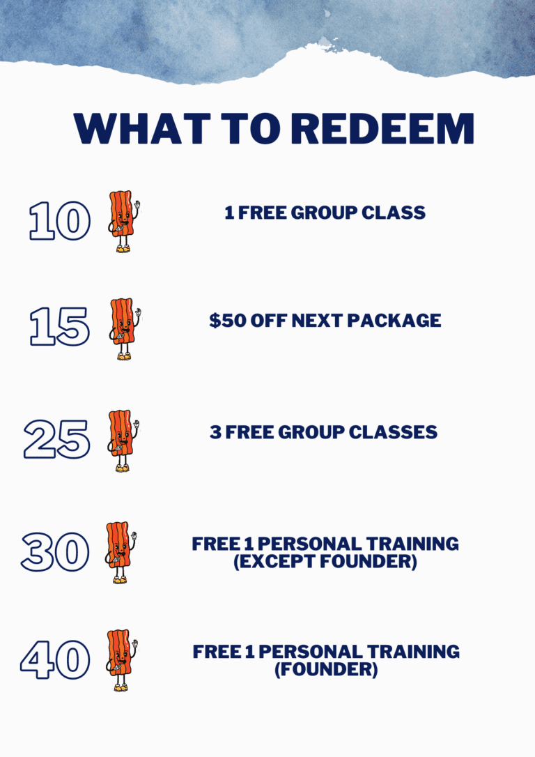 Use your Bacons to redeem FREE group classes and personal training sessions! Yes, it’s as simple as that!
